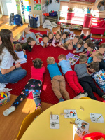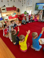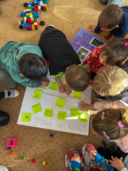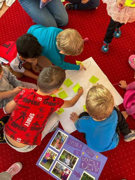 Má autorské čtení nejsou jen o sezení na koberci či na židlích🪑. Během bloků kombinujeme pohyb, dramatizaci a prožitek tak, abychom se společně ocitli přímo v pohádce.✨ Nechybí názornost, která patří mezi klíčové didaktické zásady.🔑