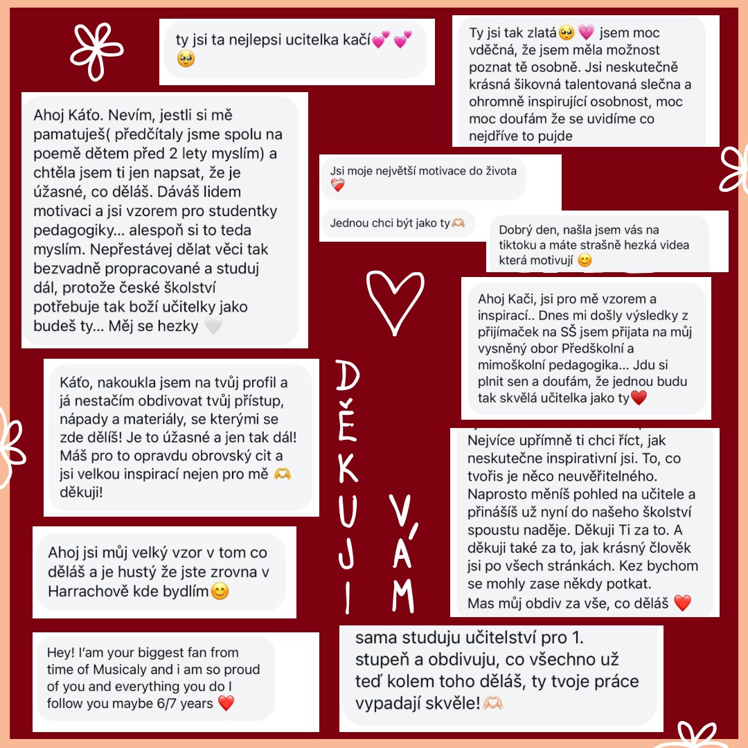 Jsem stále na cestě za svou vysněnou (nelehkou) profesí. Když se ohlédnu zpět, vidím, kolik milníků už mám za sebou. Uvědomuji si, jak život plyne a zastavuje se pouze v jedinečných okamžicích. Díky splněným etapám začínám věřit svému současnému cíli – stát se paní učitelkou na prvním stupni základní školy.